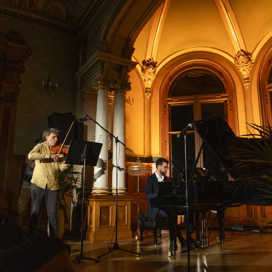 W czwartek (5 października 2023) utwory Henryka Wieniawskiego oraz Wolfganga Amadeusza Mozarta, Clauda Debussy’ego oraz Antonia Bazziniego i Maurice’a Ravela wykonali w Willi Lentza Emmanuel Salvador – skrzypek i Dominik Franczuk – pianista.