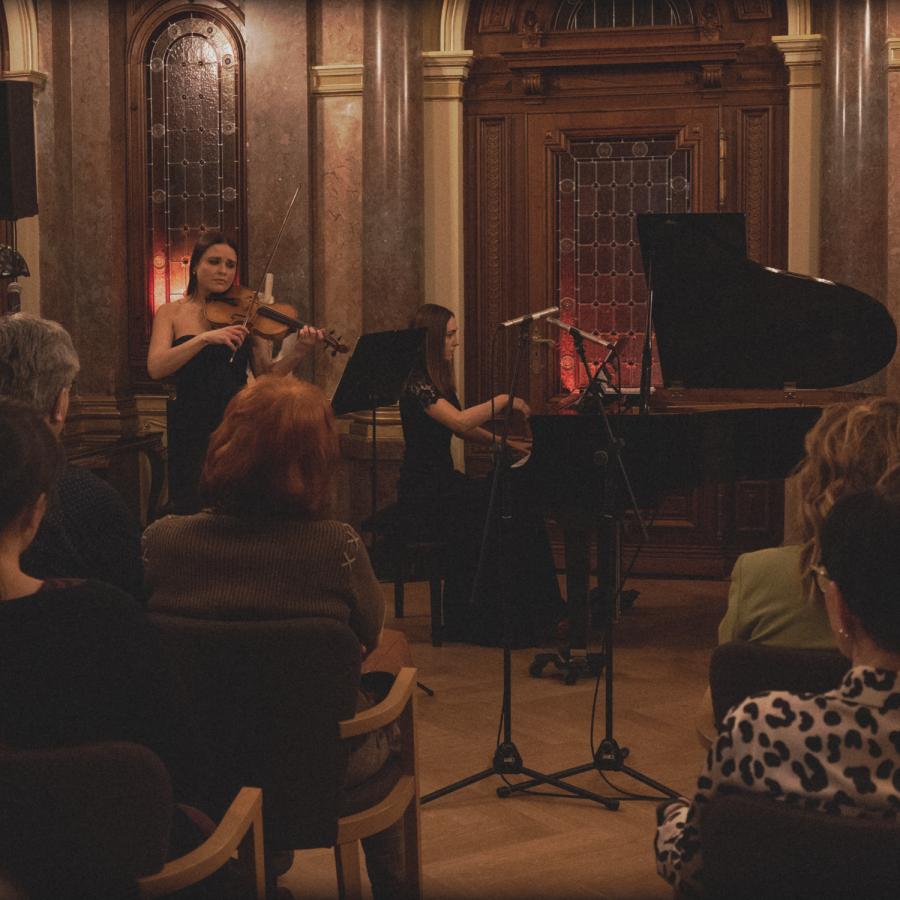 Muzyczny wieczór uświetniły swoim udziałem wiolinistka – Maria Radoszewska i pianistka – Olga Bila. Publiczność nagrodziła występ artystek gromkimi brawami, wyróżniając przy tym interpretację jednego z najpiękniejszych utworów epoki impresjonizmu, czyli „Światło księżyca” oraz genialne tanga „Jalousie” i „Vuelvo al sur”.