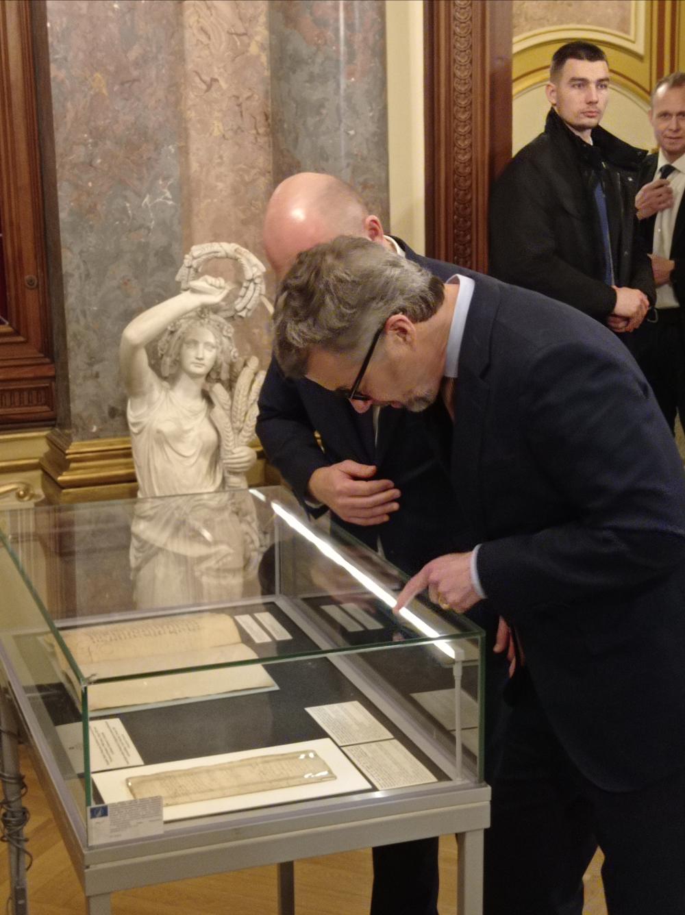 Na zakończenie spotkania Fryderyk X obejrzał dokumenty archiwalne, dostarczone i wystawione w szklanych gablotach przez Archiwum Państwowe w Szczecinie. Wśród dokumentów znalazły się: