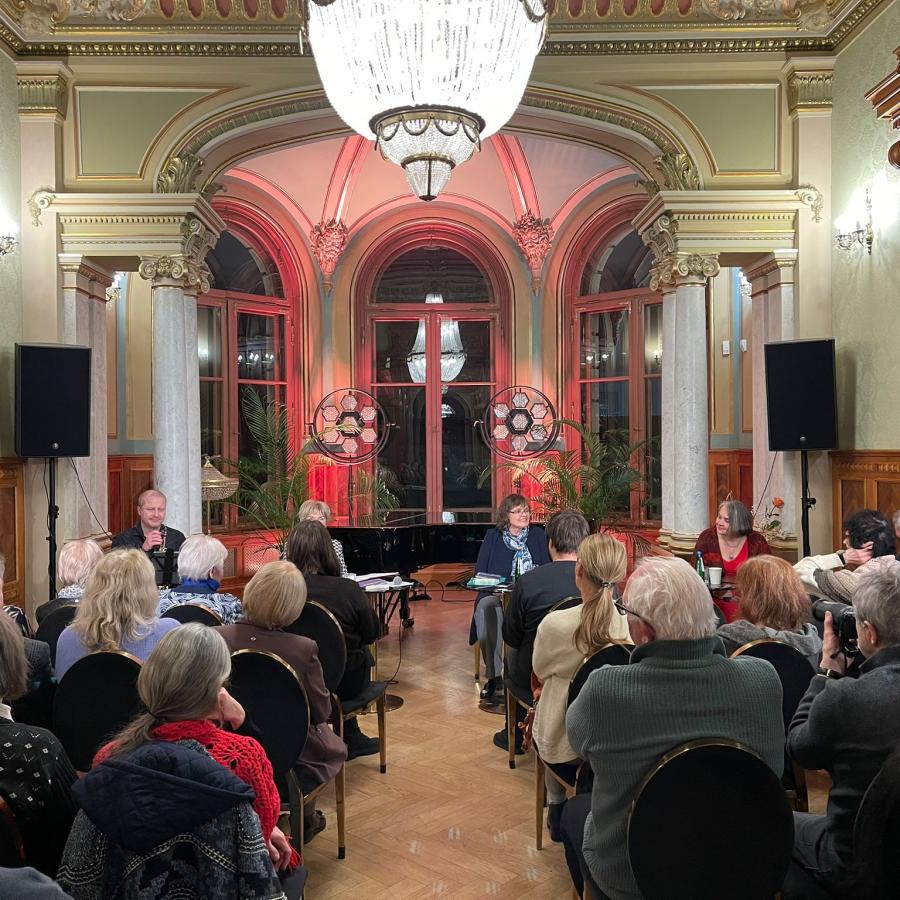 W środę, 19.11.2025, w Willi Lentza odbyła się premiera książki Krystyny Rodzewicz „Odczytywanie miasta. Szczecin w literaturze XXI wieku”. Podczas spotkania Róża Czerniawska-Karcz prowadziła rozmowę z autorką, a fragmenty książki czytała Krystyna Maksymowicz. Wieczór uzupełniała muzyczna oprawa Mateusza Prygonia.